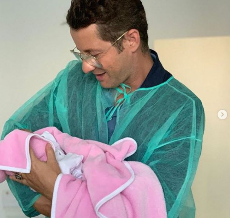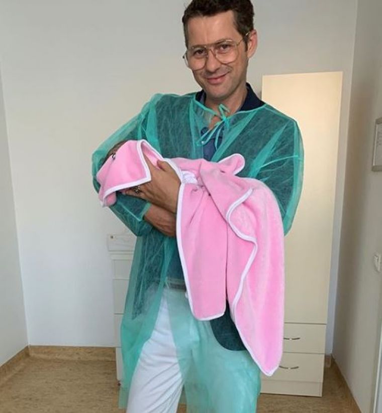 Și Adi Sână a făcut publice mai multe imagini în care își ține fiica în brațe.